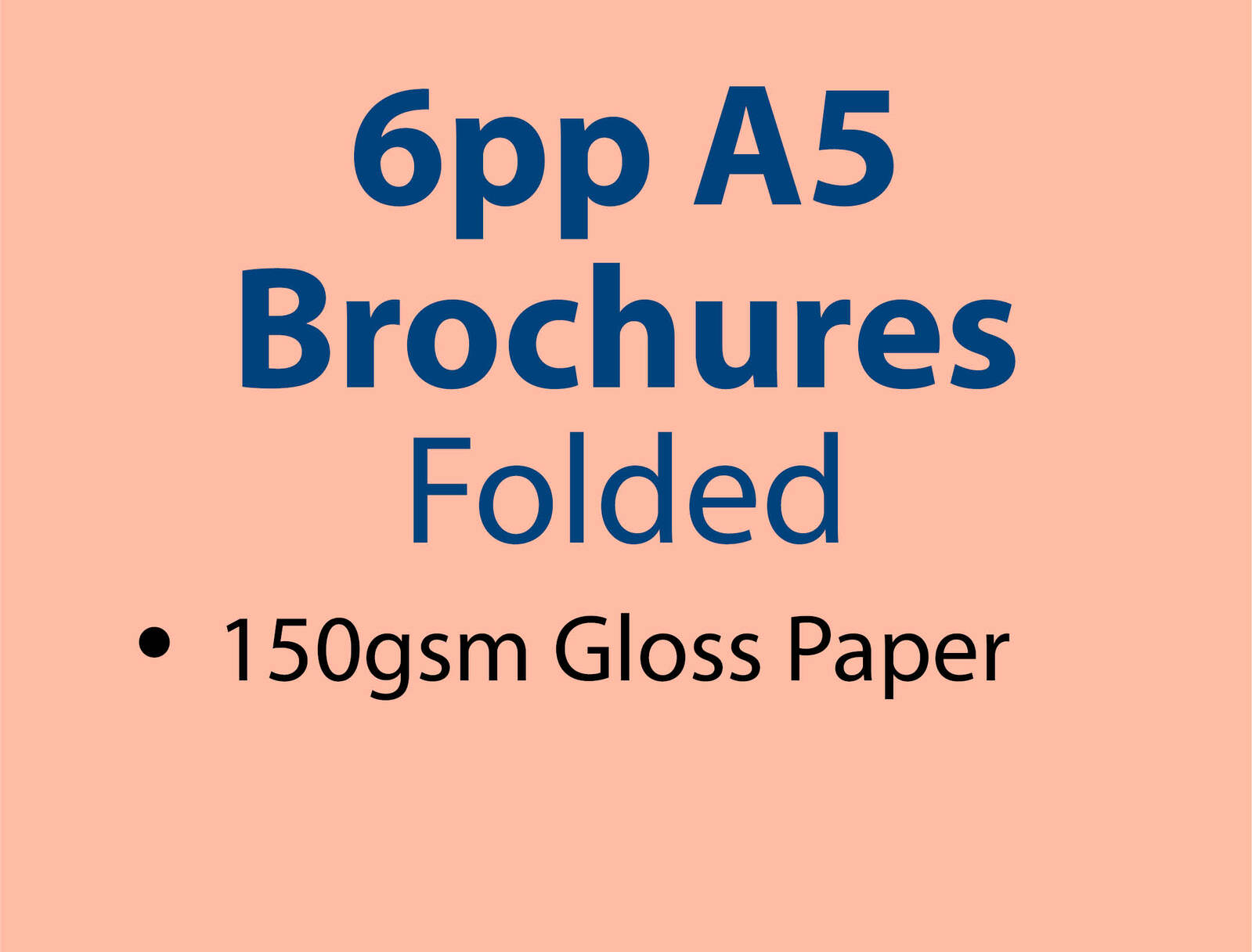 6pp A5 folded brochure is a very popular brochure for marketing including letterbox distribution. Its flat size is 444mm x 210mm. Our brochures are printed on premium 150gsm gloss paper which is the most common paper choice for brochures. It is folded to A5 either roll fold or Z fold.